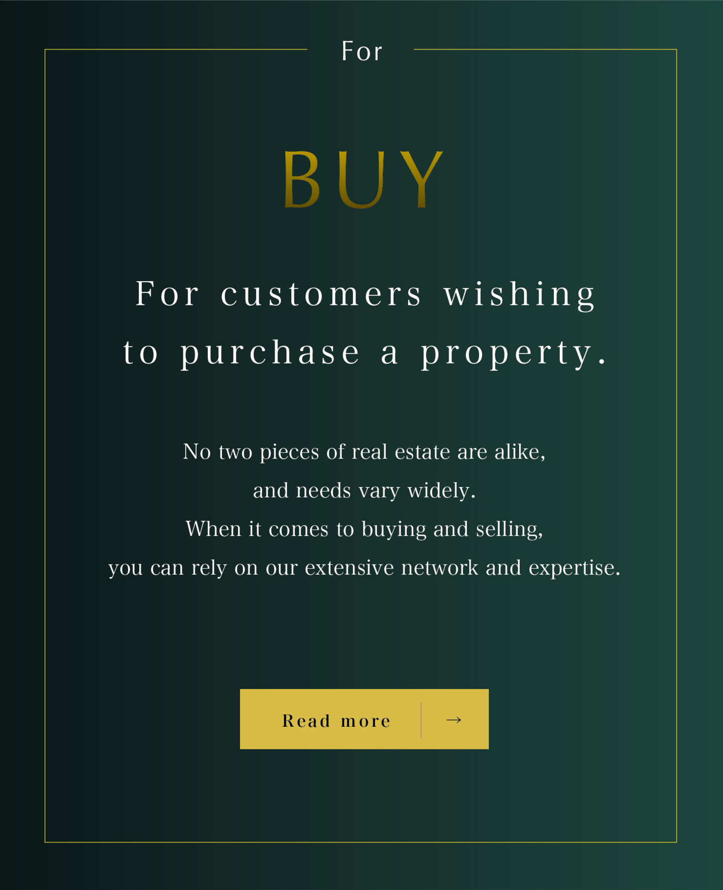 We are here to help you purchase a property tailored to your needs. With our market expertise and extensive network, we can help you find your ideal property. From the purchase procedure to the handover, you can rest assured that we will take care of every step of the process.