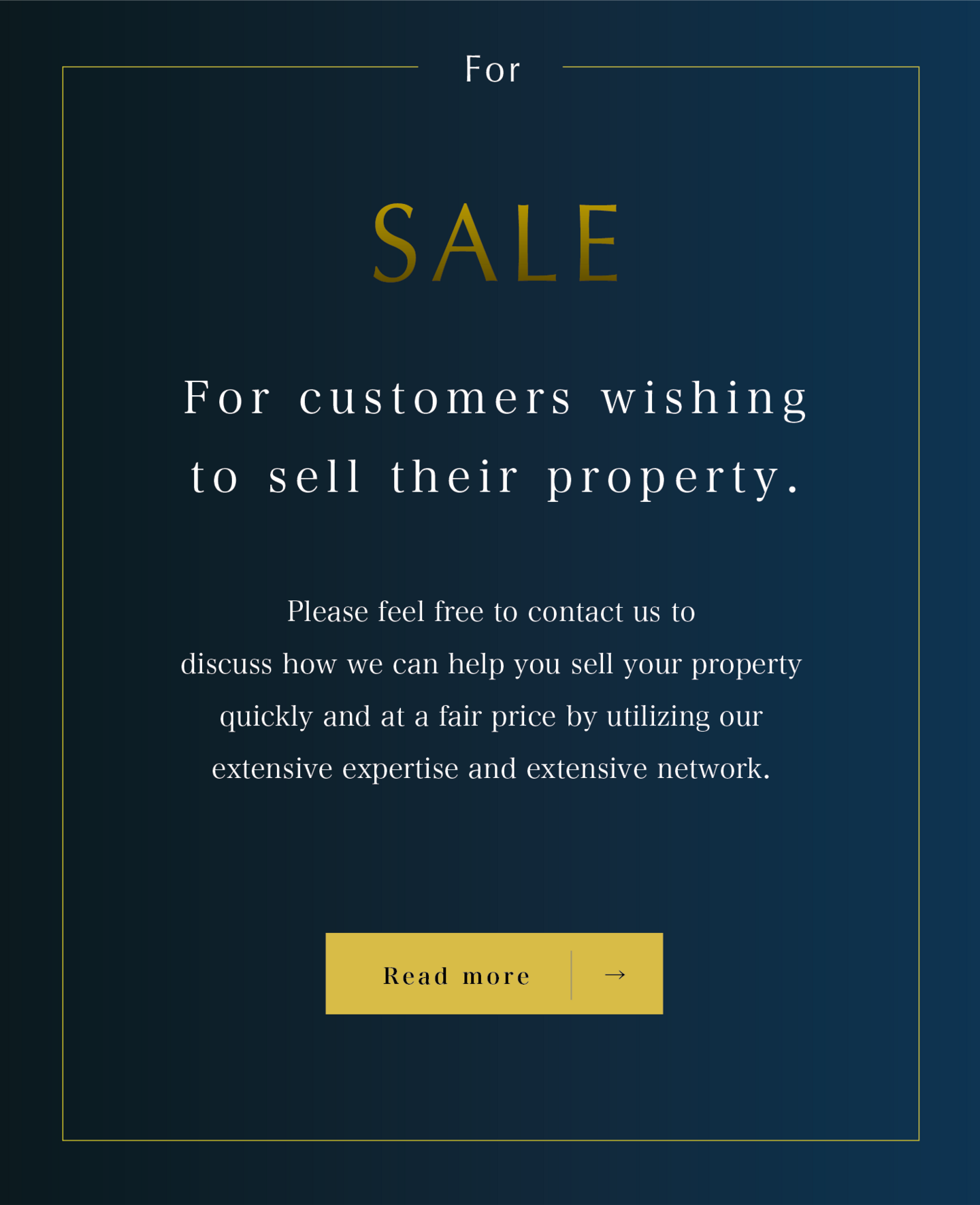 We have extensive experience and a proven track record in the sale of properties. We provide strategies based on market trends, utilizing our extensive network and expertise to quickly sell your property at the best price.