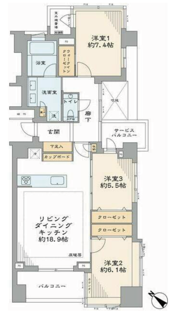 ■Balcony area/11.87m² (balcony area 7.35m² , service balcony area 4.52m² )